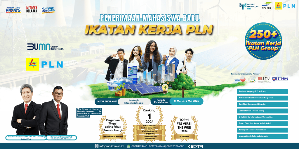 Jakarta, 17 Maret 2025 – Institut Teknologi PLN (ITPLN), Kampus Energi, secara resmi membuka Pendaftaran Mahasiswa Baru (PMB) Tahun Ajaran 2025/2026, termasuk Program Ikatan Kerja ITPLN 2025. Program ini memberikan kesempatan bagi calon mahasiswa untuk langsung terhubung dengan PLN Group melalui jalur seleksi khusus. Sebagai kampus energi, ITPLN berkomitmen mencetak lulusan yang siap menghadapi tantangan [...]