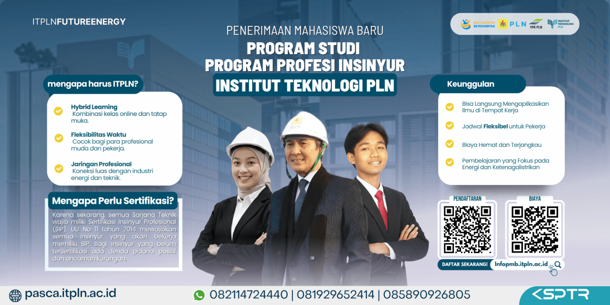 Seleksi Program Studi Program Profesi Insinyur (PSPPI) ITPLN tahun ajaran 2025/2026 Genap telah dibuka.Raih potensi maksimal Anda dengan Program Profesi Insinyur (PSPPI) dari ITPLN!