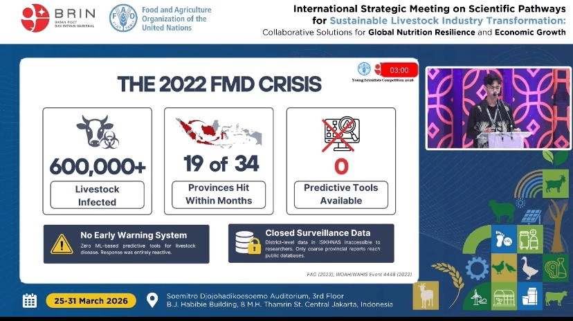 Riset ini berangkat dari krisis besar wabah Penyakit Mulut dan Kuku (PMK) tahun 2022 yang menginfeksi lebih dari 600.000 ternak di 19 provinsi tanpa adanya sistem prediksi sebelumnya.